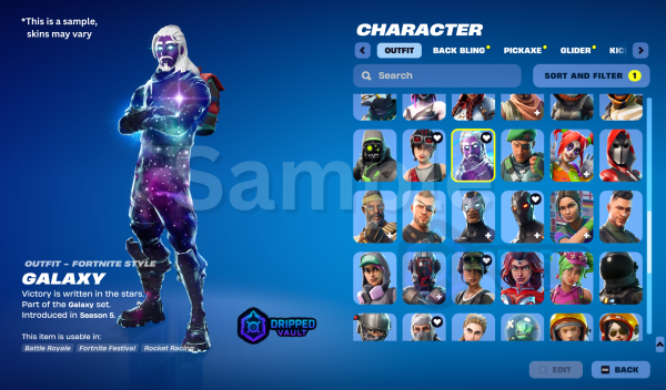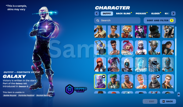 • Each account includes a unique mix of skins, emotes, pickaxes, and cosmetics.